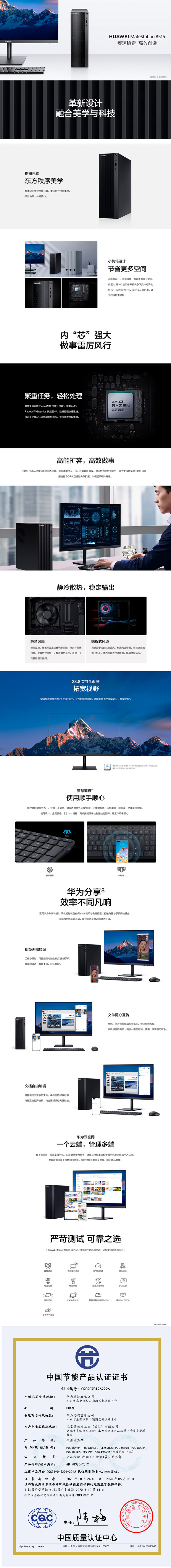商品名称:华为Matestation B515 AMD Ryzen 5 4600G(3.7GHz/8MB/6核)/8GB(8GB*1)/256G SSD+1TB /无光驱/指纹键盘/USBMouse/WIFI/串口/300W/23.8"显示器/三年上门服务/一碰传