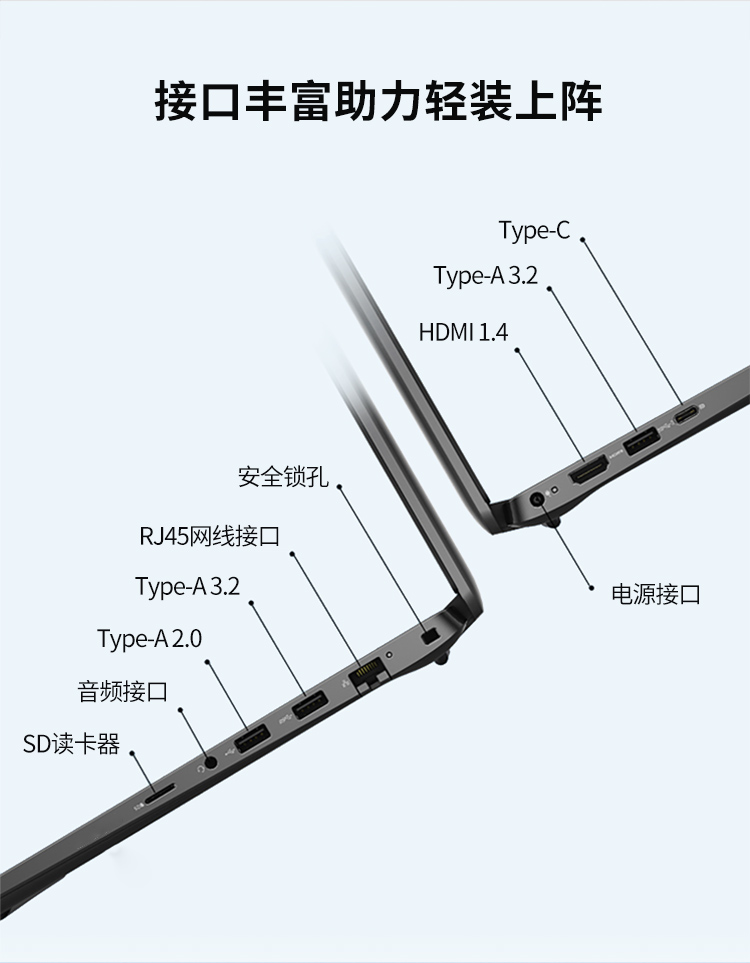 • 音频接口:耳机、麦克风二合一接口 3.5mm