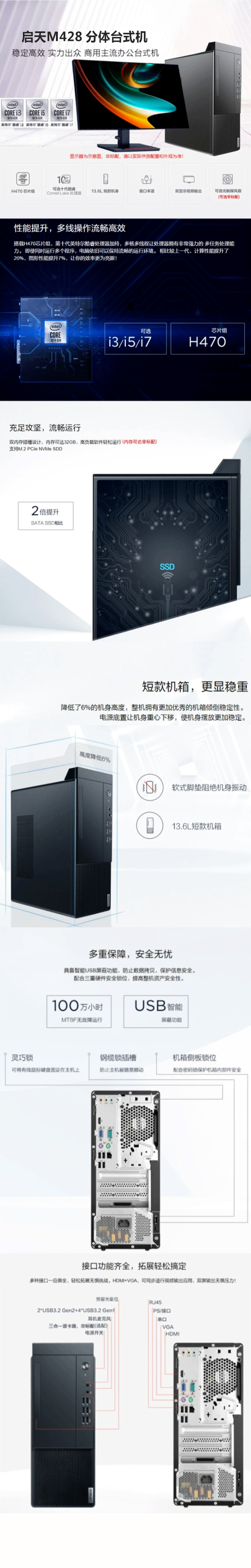 商品名称:联想启天M428-A104/I3-9100/8G/128G/1TB/DVD刻录光驱/W10/显示器21.5寸