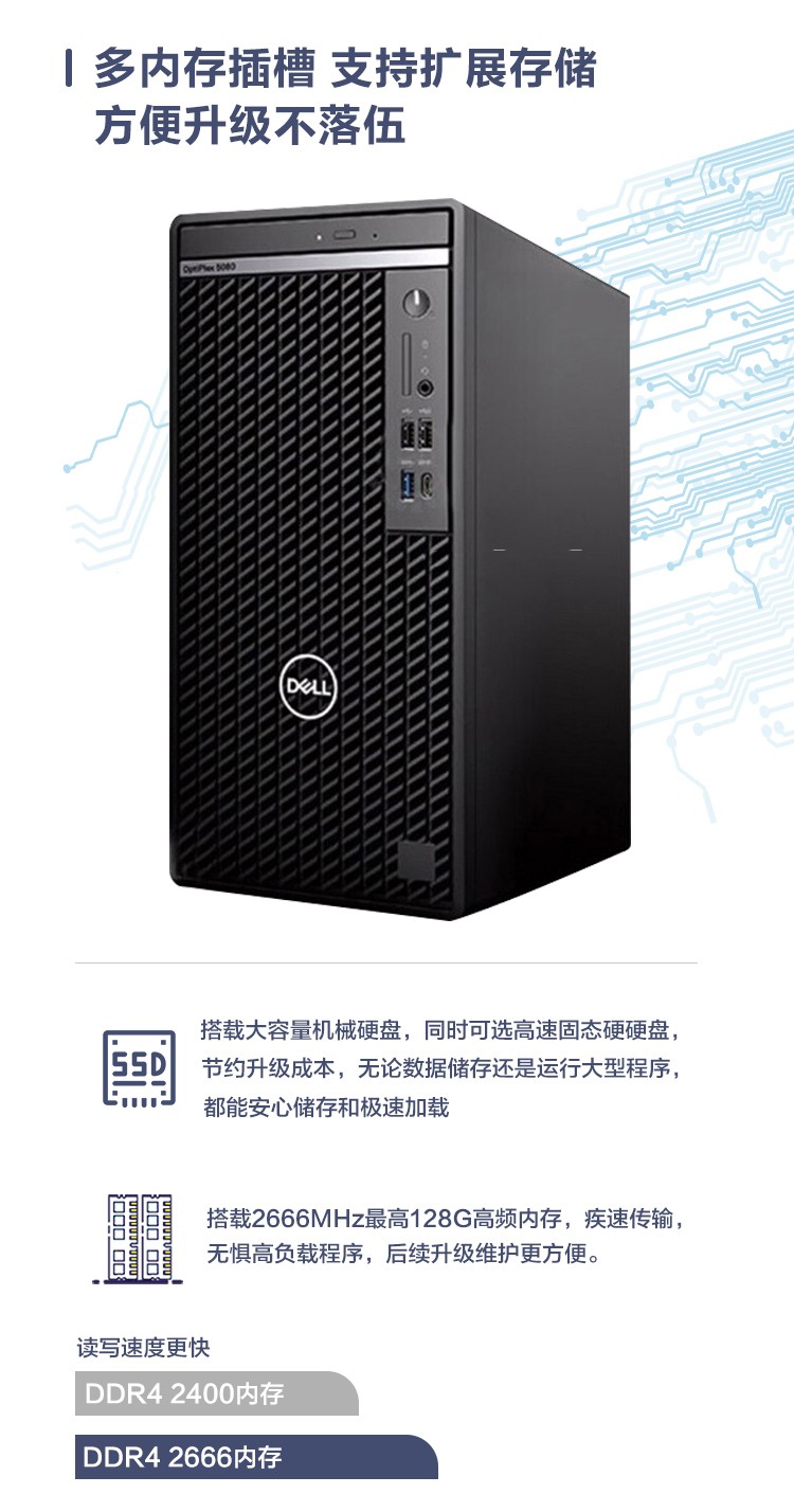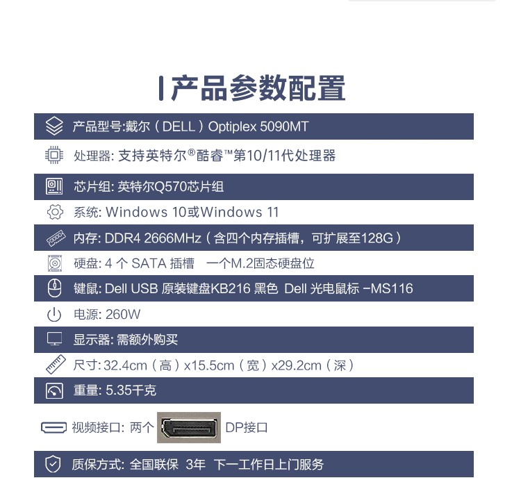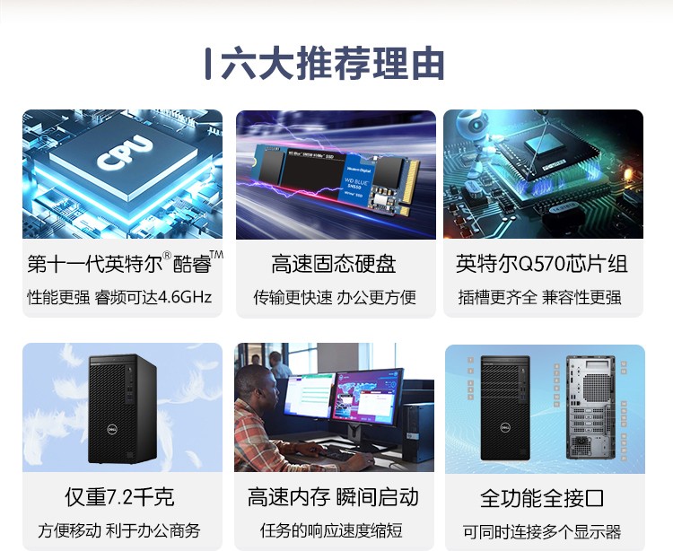 商品名称:戴尔台式办公电脑3990 I5-10500 CPU 16G内存条 256SSD固态硬盘 1TB机械硬盘 SE2722HR 27寸显示器 配套戴尔无线键盘鼠标 无光驱含送货安装调试